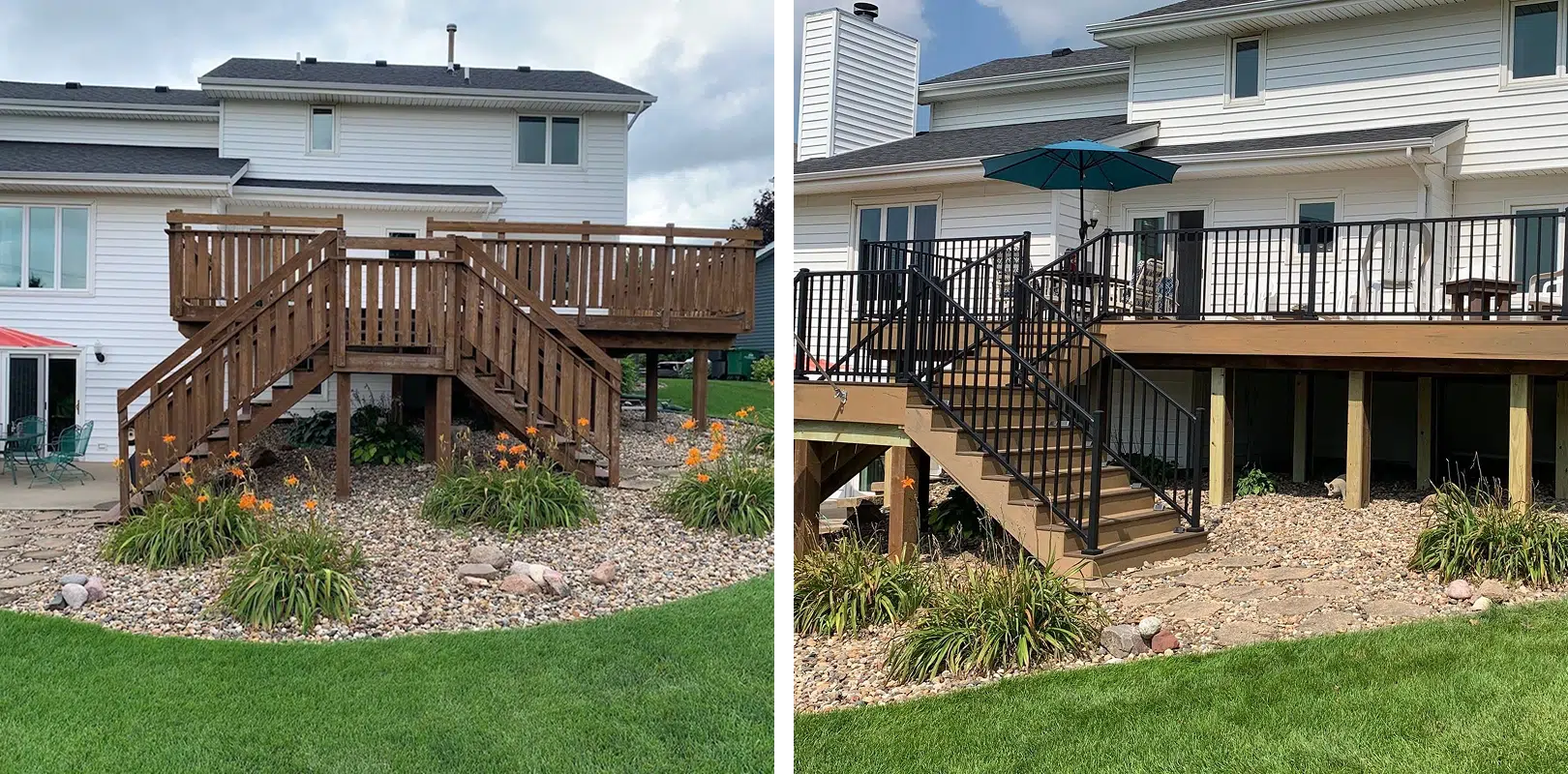 Railings are more than just a finishing touch – they’re an essential safety feature for your deck. With Custom Decks IA, you get railings that not only protect your family but also elevate the style of your outdoor space. Our aluminum and cable systems are designed for durability, low maintenance, and unobstructed views